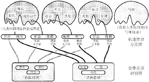诚然,识别愤怒与理解愤怒或者对愤怒产生同情是不一样的,仅仅学会识别愤怒也无法告诉我们如何根据自己个人的愤怒经验识别他人的“愤怒类型”轨迹。但如果我们的基因已经为我们配备了从特定重要轨迹类型智能体到特定“原型专家”智能组的联结,那么识别每种特定的轨迹类型都会激活一种特定类型的情感反应。