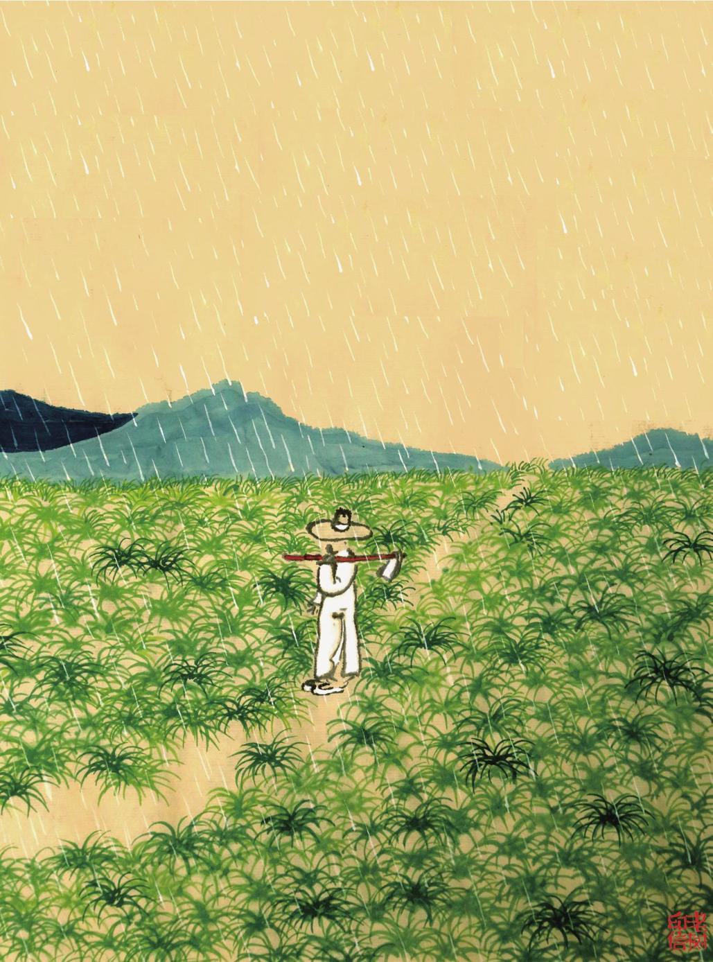 可见,成功并非意味着终结,春天的本质之一是生发、成长。农民的本质属性就是勤劳而非休止懒惰,靠天吃饭的农民从来不是等靠要的。有些懒惰的人看到阳光、春雨俱足,轻松下来,认为自己可以不劳而获,不用怎么出力就会在秋天有好收成,真的想“靠天吃饭”,从而影响劳动、生产、生活的方方面面,懈怠下来,结果秋天反而一无所成,只好盼来年。“懒汉种田,又望来年。”农民的辛苦非同一般:“种地别夸嘴,全凭肥和水。”“种地不上粪,等于瞎胡混。”“春天比粪堆,秋后比粮堆。”“七九八九雨水节,种田老汉不能歇。”用一些现代学人的话语方式说,农民跟土地的关系,是一种能量交换关系,没有劳动力的投入,即农民能量的投入,土地不会产生丰硕的果实。