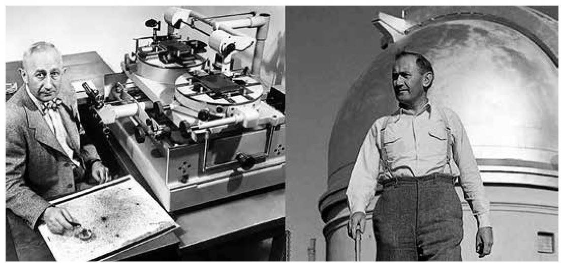 1934年,在美国工作的兹威基和巴德(图13-2)讨论了超新星爆发的问题。两个人一直对超新星爆发特别感兴趣,他们始终搞不清楚那么大的爆发,能量是从哪里来的?一颗普普通通的恒星,怎么会突然亮到白天都可以看到?公元1054年,中国天文学家就记录到突然出现一颗“客星”,在二十三天的时间里白天可见,之后二十二个月里,夜间还可以看到,然后才隐匿不见了。这是一条非常可信的记录,人类历史上肉眼可见的这种超新星现象,不过才六次而已。正巧查德威克发现了中子,兹维基毫不客气地把中子纳入到了自己的构想之中,他在猜想这一场大爆炸以后,到底会剩下什么。这一年,巴德和兹威基在《物理评论》上发表文章,认为超新星爆发可以将一个普通的恒星转变为中子星,而且指出这个过程可以加速粒子,产生宇宙线。但是,他们并不是第一个想到中子星这个概念的,最先想到的是苏联人。