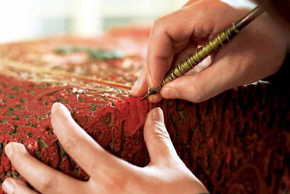 漆器的历史在中国非常之长。浙江省博物馆藏了件朱红漆碗,七千年前出土。据此推算漆工艺可能更早,因为那时已经用红色颜料了,纯生漆肯定会更早。明代有一本漆工艺专著《髹饰录》,黄成写的,里面记录了十四大类,上百个品种。