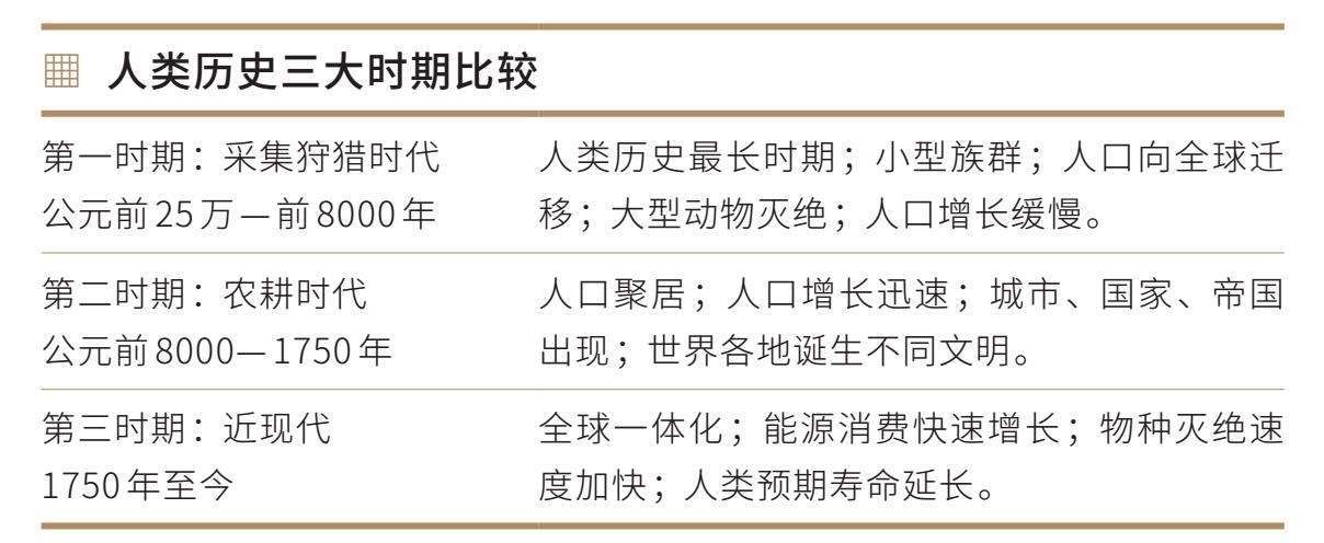 随着人类越来越广泛地遍布地球,人类的数量明显增加了。尽管基因证据显示距今约7万年前,人类人口缩减至区区几千人,但是现今对采集狩猎时代的人口进行估算,大体上还是依赖于猜测。最近,人口统计学家马西姆·利维巴奇(Massimo Livi-Bacci)提出了一个颇具影响力的推测。他宣称3万年前,世界人口仅有几十万人;但到了1万年前,人口可能已达600万左右。如果我们假定3万年前世界人口为50万,那么就意味着,在距今3万年到1万年前这一时间段中,世界人口的年增长率低于0.01%。也就是说,世界人口大致每8 000年至9 000年翻一番。我们可以把这个增长率和其他历史阶段的平均增长率作比较:农耕时代是每隔1 400年翻一番,现代社会是每隔85年翻一番。