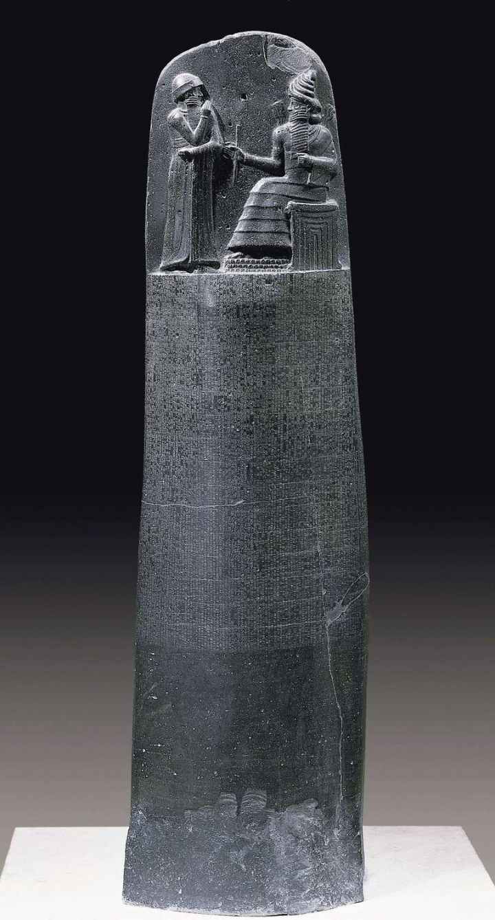 汉谟拉比法典石碑,建造于公元前1754年左右,现存于法国卢浮宫。汉谟拉比是巴比伦的第六位国王,统治着两河流域的大部分地区。该法典向人们揭示了早期人类帝国的法制规范与秩序。正文包括282条法律,详细规定了帝国的刑事、民事、贸易、审判等领域的制度。