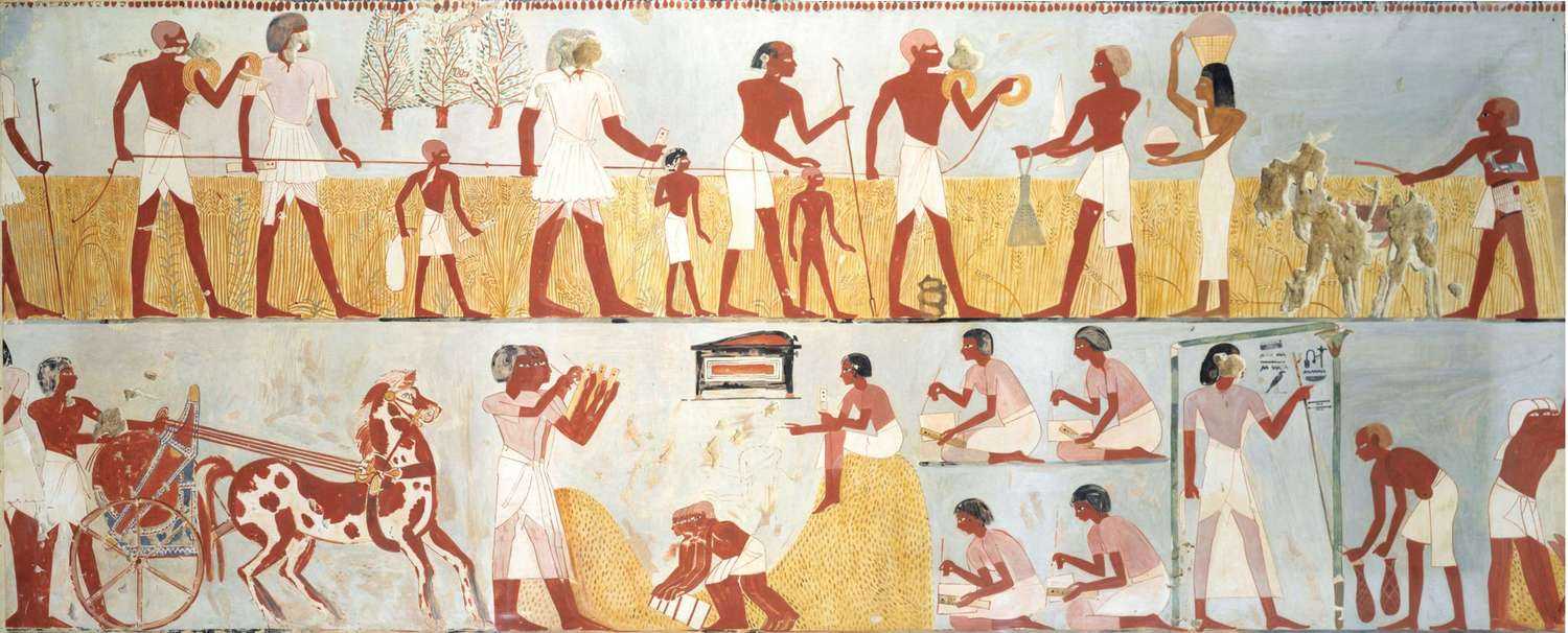 公元前1200年的埃及坟墓壁画。农业的兴起并非一夜之间,而是历时数千年的缓慢过程。农业革命彻底改变了人类的生活方式。