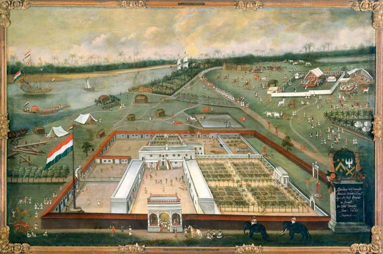1655年,荷兰东印度公司在孟加拉建立的“工厂”。葡萄牙、西班牙以及接踵而至的荷兰和英国,占领了全球重要的贸易口岸。控制全球贸易网络为欧洲国家带来了巨大的商业财富,同时也带来了大量崭新的关于地理、自然世界以及其他社会习俗的信息。