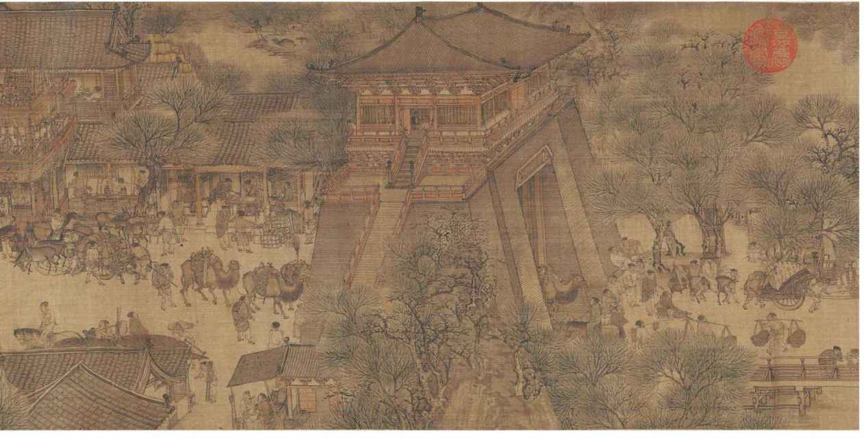 《清明上河图》呈现了公元10世纪北宋都城汴京的繁荣景象。北宋在当时世界贸易网络中也占据重要地位。由于丝绸之路被西夏阻断,北宋开始发展海上贸易。北宋的铜钱成为国际货币,丝绸、瓷器、茶叶等远销地中海世界。