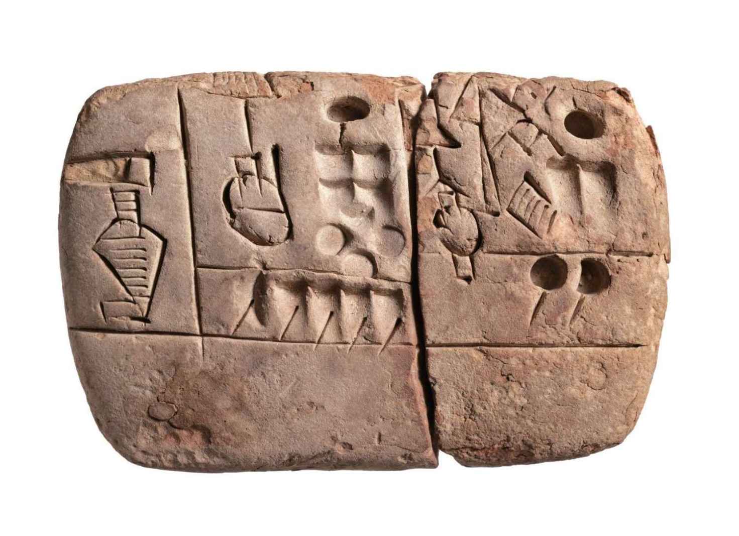美索不达米亚的一个楔形文字泥板,上面记录了大麦和麦芽交易的信息。两河流域的楔形文字最早可以追溯到约公元前3000年,最初就是为了记账之用。