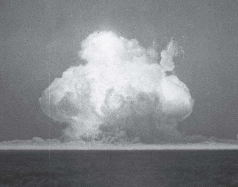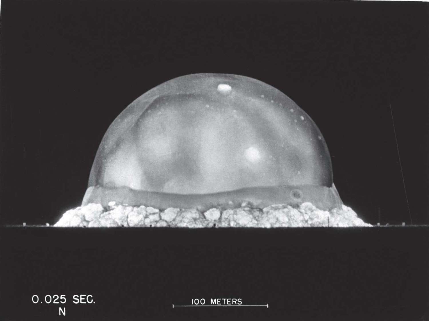 美国早在1941年就启动了研制原子弹的“曼哈顿计划”,这项计划旨在摧毁纳粹德国。1945年7月16日,美军在新墨西哥州的阿拉莫戈多市附近成功引爆了第一颗原子弹,核物理学家罗伯特·奥本海默在看到爆炸之后,引述了《薄伽梵歌》:“现在我成了死神,世界的毁灭者。”实际上,原子弹所能造成的科技灾难,将时刻成为悬在人类世界上方的“达摩克里斯之剑”。图中呈现的分别是原子弹引爆0.025秒、8秒、9秒的景象。