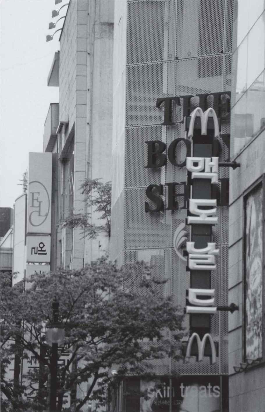 韩国首尔市中心的一栋建筑上,挂着麦当劳的广告牌,西方消费品的流行程度可见一斑。