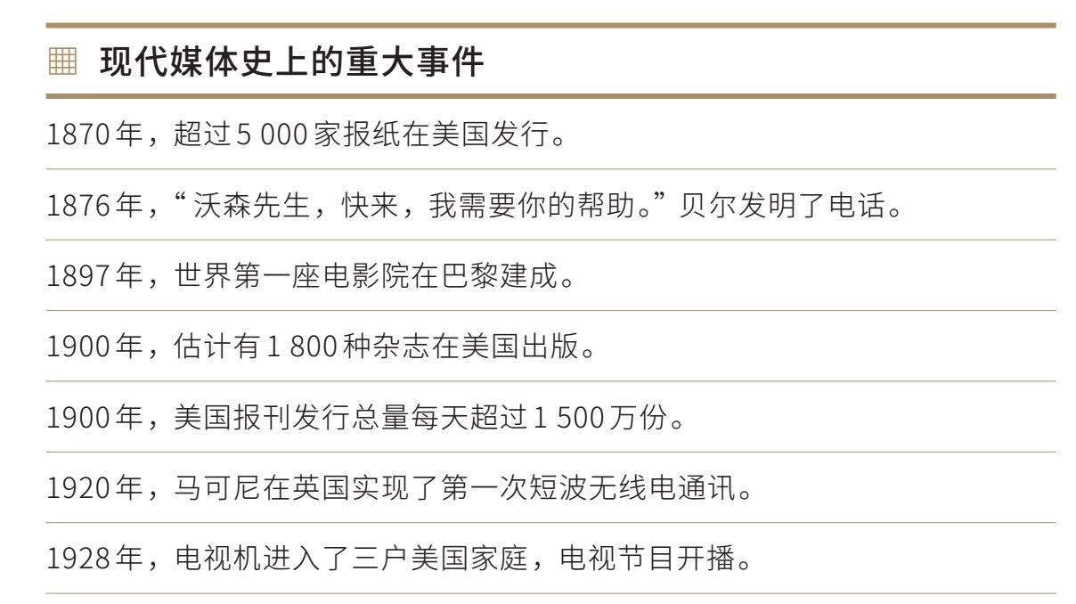 来源: University of Minnersota Meddia History Project.(2007).Retrieved May 22,2007.来自: http://www.mediahistory.umn.edu/timeline。