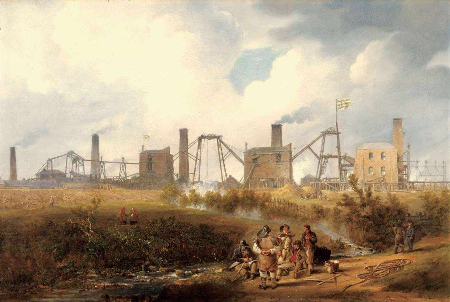 英国达勒姆郡东部的工业城市莫顿,这里原本以农耕生产方式为主。工业革命以后,该地因富藏煤炭资源,发展为一座工业城市。图中描绘的是19世纪中叶,这里工厂紧挨农田建立的场景,体现了农业社会不断后退,为工业社会让渡土地、人力等资源的历史结局。