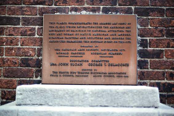 69团军械库前纪念碑。1913年在此举办的“军械库展”将欧洲现代艺术介绍到纽约,曼哈顿
