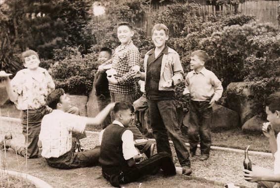 台北美国学校,1951。作者为近右一处,坐于草坪(作者提供)