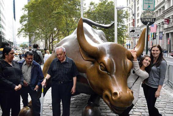 这下子可惹火了纽约人。天上掉下来这么好礼物,又没浪费纳税人一毛钱,还带给我们一点点希望……好,在市民抗议声中,纽约市公园部才收购,并在1989年将铜牛重新安置在“保龄草地”公园前门,朝北,面向华尔街和百老汇。
