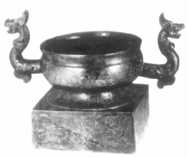 鼎:在新石器时代,有陶质的鼎。到夏商周时期,鼎也变为青铜器皿,用来烹煮和存放肉类食物。鼎有圆形和方形,圆形最为常见。鼎多作为礼器,是地位和等级的象征,最高的“天子”使用九鼎,所以“九鼎”又作为国家的象征,有“一言九鼎”之说。鼎最早出现于黄河中游,距今已经有8000年的历史了。