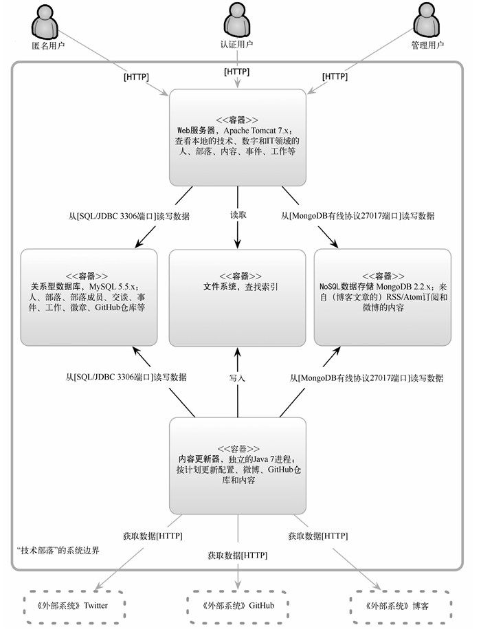 下面这张图展示了组成“技术部落”网站的逻辑容器。