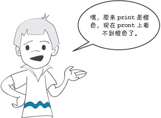 这个错误消息表示,Python 不懂你键入的内容。在上面的例子中,print 被错拼为 pront,Python 不知道该怎么处理。如果你犯了这个错误,可以再试一次,这一回一定要完全按照例子键入指令。