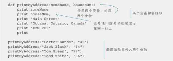 要向街道上的每一个人发送卡特的信,我们的地址打印函数需要两个参数:一个对应人名,另一个对应门牌号码。代码清单 13-3 显示了这个函数。