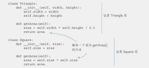 Triangle 类和 Square 类都有一个名为 getArea 的方法。所以,如果分别有这两个类的实例,如下: