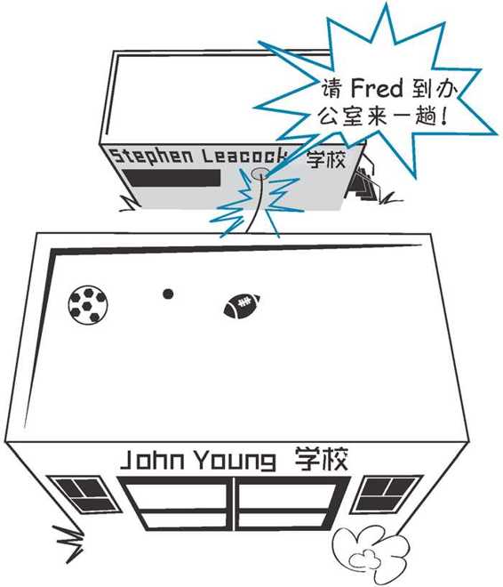 下面假设你们学校(John Young 学校)根本没有一个名叫 Fred 的人。如果校长通过广播系统想找 Fred,她肯定找不到这个人。现在假设与你们学校同在一条街上的另一个学校(Stephen Leacock 学校)正在进行部分校舍维修,这个学校把一个班级临时搬到你们学校的活动房里上课。在这个班里,恰好有一个学生名叫 Fred。不过这个活动房还没有连上广播系统。如果校长找 Fred,肯定还是找不到。但是,如果她把这个新的活动房连入广播系统,然后再找 Fred,就会找到 Stephen Leacock 学校的 Fred。
