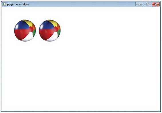 运行这个程序,看看会发生什么。球移动了吗?嗯,移动了一点。你应该会看到两个沙滩球,如下图所示。