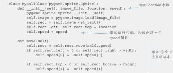 现在创建球的各个实例时,需要告诉它速度,还要指出图像文件以及位置: