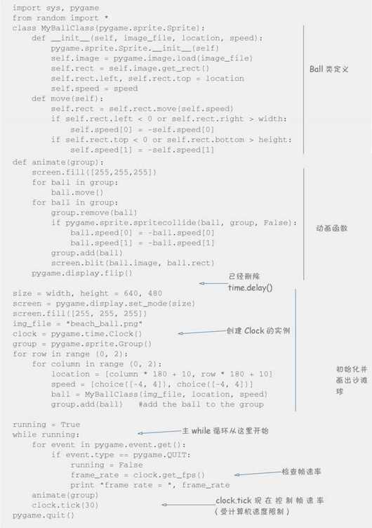 代码清单 17-4 沙滩球程序中使用 Clock 和 get_fps