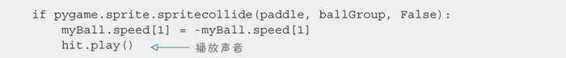if pygame.sprite.spritecollide(paddle, ballGroup, False): myBall.speed[1] = -myBall.speed[1]