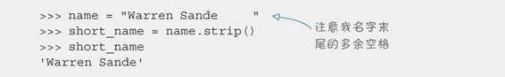 >>> name = \'Warren Sande\'>>> short_name = name.strip(\'de\')>>> short_name\'Warren San\'