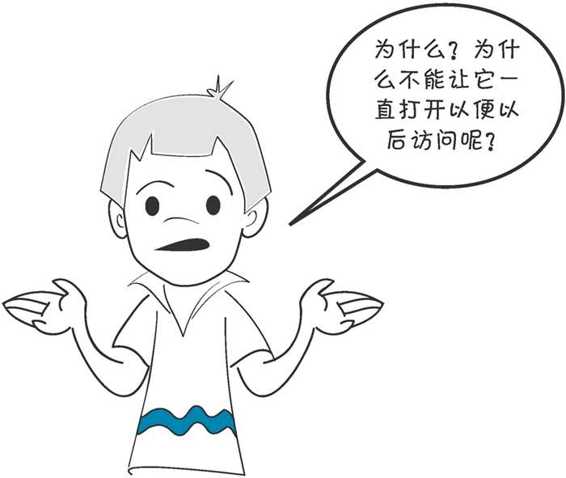 嗯,卡特,倘若另一个程序需要使用这个文件,而我们的程序又还没有将它关闭,那个程序就无法访问这个文件了。使用完文件后就关闭它,这样通常会比较好。