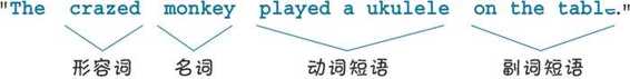 动词短语:played a ukulele, danced a jig, combed his hair, flapped her ears