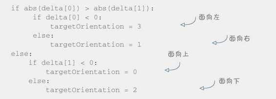 首先算出 delta,即目标位置和机器人位置的差距。然后,你需要知道要想面向敌人,机器人应该面向哪个方向: