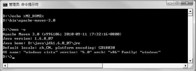 第一条命令echo%M2_HOME%用来检查环境变量M2_HOME是否指向了正确的Maven安装目录;而mvn-v执行了第一条Maven命令,以检查Windows是否能够找到正确的mvn执行脚本。
