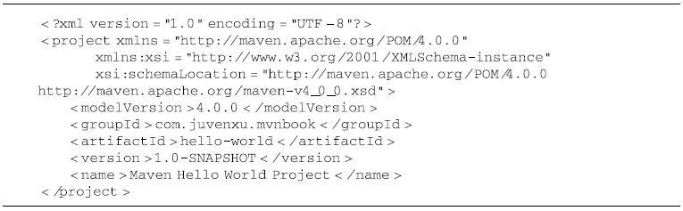 就像Make的Makefile、Ant的build.xml一样,Maven项目的核心是pom.xml。POM(Project Object Model,项目对象模型)定义了项目的基本信息,用于描述项目如何构建,声明项目依赖,等等。现在先为Hello World项目编写一个最简单的pom.xml。