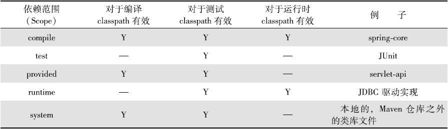 上述除import以外的各种依赖范围与三种classpath的关系如表5-1所示。