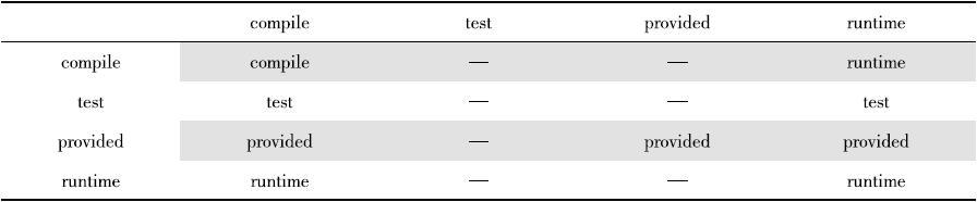 表5-2 依赖范围影响传递性依赖