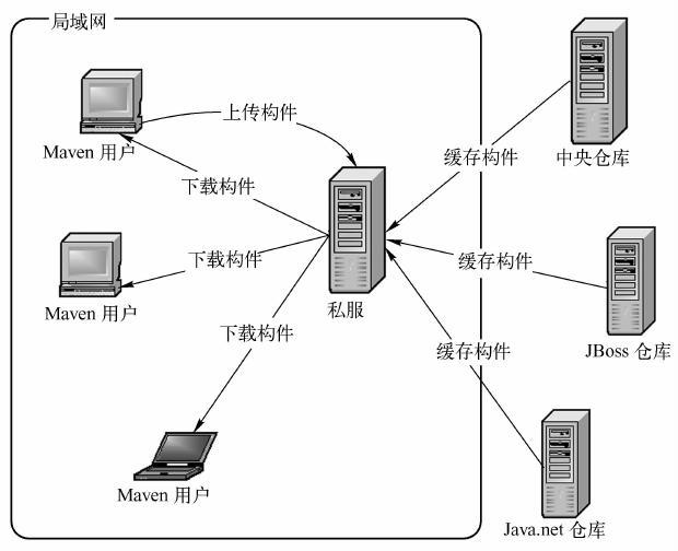 建立私服是用好Maven十分关键的一步,第9章会专门介绍如何使用最流行的Maven私服软件——Nexus。