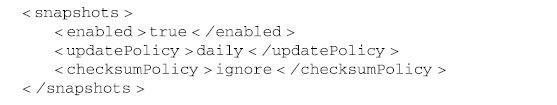 对于releases和snapshots来说,除了enabled,它们还包含另外两个子元素updatePolicy和checksumPolicy: