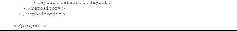 该例中的layout元素值default表示仓库的布局是Maven 2及Maven 3的默认布局,而不是Maven 1的布局。