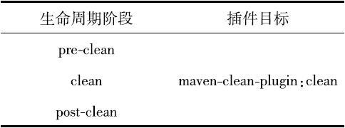 clean生命周期仅有pre-clean、clean和post-clean三个阶段,其中的clean与maven-clean-plugin:clean绑定。maven-clean-plugin仅有clean这一个目标,其作用就是删除项目的输出目录。clean生命周期阶段与插件目标的绑定关系如表7-1所示。