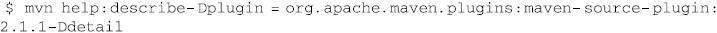 有时候,即使不通过phase元素配置生命周期阶段,插件目标也能够绑定到生命周期中去。例如,可以尝试删除上述配置中的phase一行,再次执行mvn verify,仍然可以看到maven-source-plugin:jar-no-fork得以执行。出现这种现象的原因是:有很多插件的目标在编写时已经定义了默认绑定阶段。可以使用maven-help-plugin查看插件详细信息,了解插件目标的默认绑定阶段。运行命令如下: