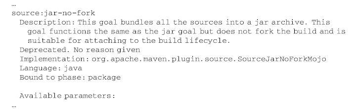 该输出包含了一段关于jar-no-fork目标的描述,这里关心的是Bound to phase这一项,它表示该目标默认绑定的生命周期阶段(这里是package)。也就是说,当用户配置使用maven-source-plugin的jar-no-fork目标的时候,如果不指定phase参数,该目标就会被绑定到package阶段。