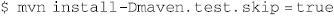 例如,maven-surefire-plugin提供了一个maven.test.skip参数,当其值为true的时候,就会跳过执行测试。于是,在运行命令的时候,加上如下-D参数就能跳过测试: