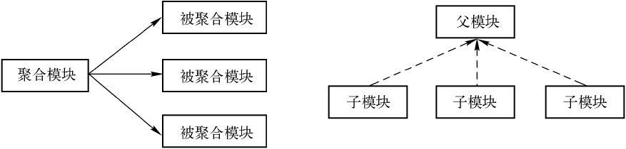 对于聚合模块来说,它知道有哪些被聚合的模块,但那些被聚合的模块不知道这个聚合模块的存在。
