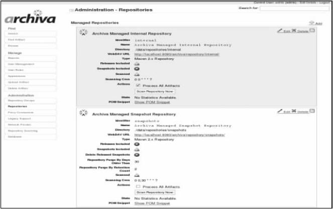 图9-24 Archiva的仓库管理界面