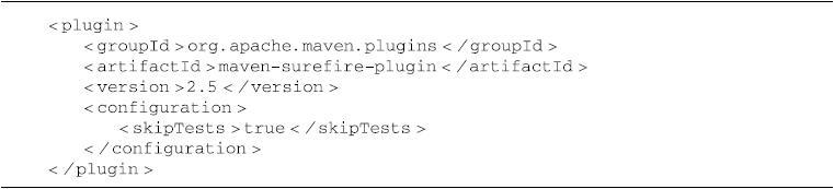 对应于命令行参数maven.test.skip的POM配置如代码清单10-13所示,但这种方法也是不推荐使用的。