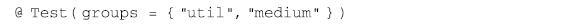 TestNG较JUnit的一大优势在于它支持测试组的概念,如下的注解会将测试方法加入到两个测试组util和medium中: