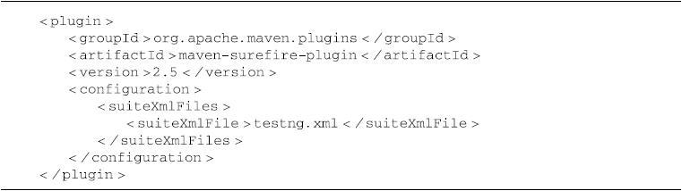 同时再配置maven-surefire-plugin使用该testng.xml,如代码清单10-18所示。