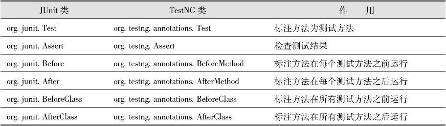 表10-1 JUnit和TestNG的常用类库对应关系