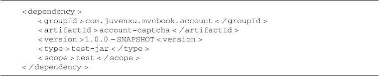 上述依赖声明中有一个特殊的元素type,所有测试包构件都使用特殊的test-jar打包类型。需要注意的是,这一类型的依赖同样都使用test依赖范围。