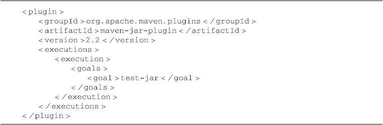 然后,在项目内部重用某个模块的测试代码是很常见的需求,可能某个底层模块的测试代码中包含了一些常用的测试工具类,或者一些高质量的测试基类供继承。这个时候Maven用户就需要通过配置maven-jar-plugin将测试类打包,如代码清单10-20所示。